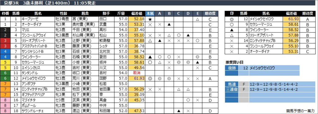 京都3R 3歳未勝利(芝1400m) 11:05発走