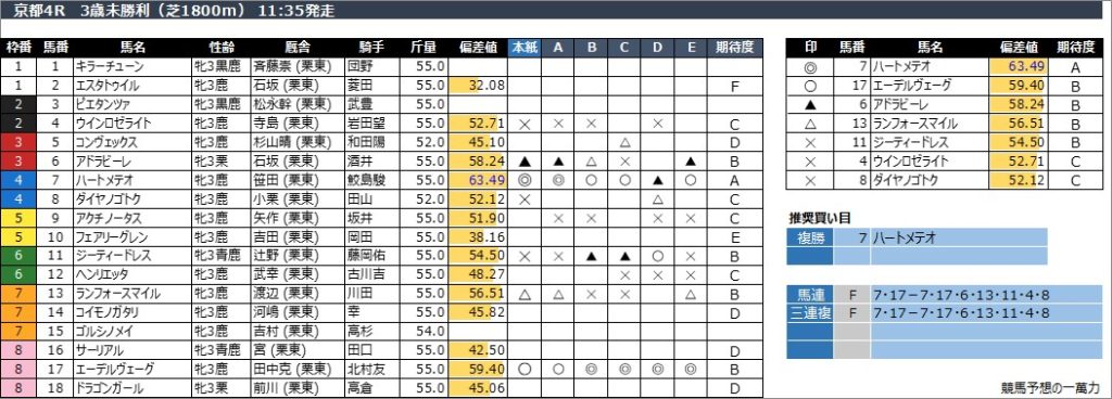 京都4R 3歳未勝利(芝1800m) 11:35発走