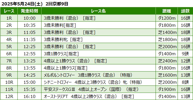 2025年5月24日(土) 京都競馬の全レース予想です。