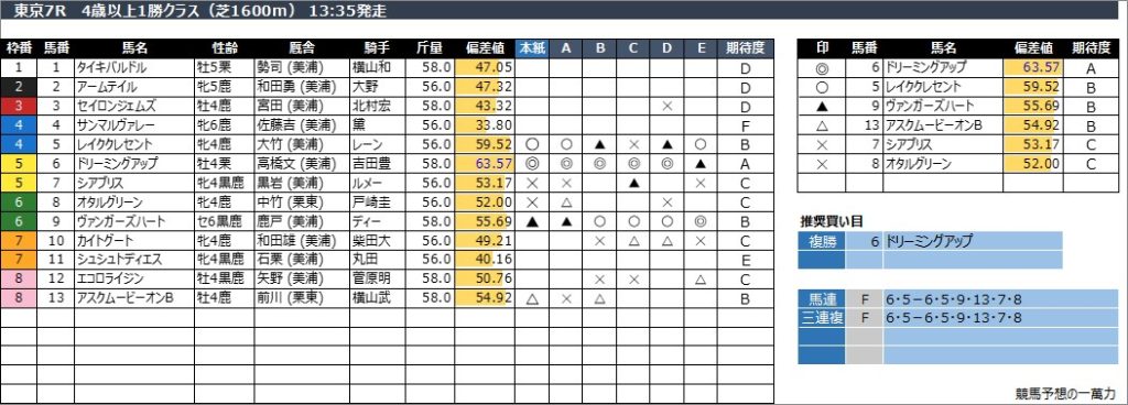 東京7R  4歳以上1勝クラス(芝1600m) 13:35発走