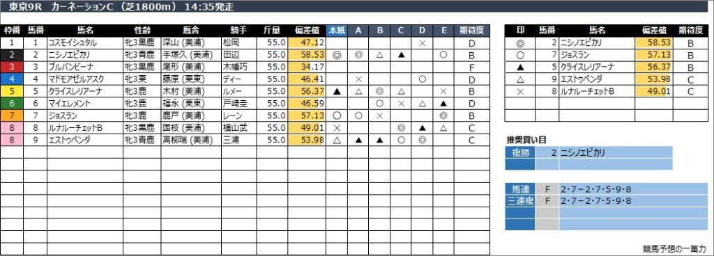 東京9R  カーネーションC (芝1800m) 14:35発走