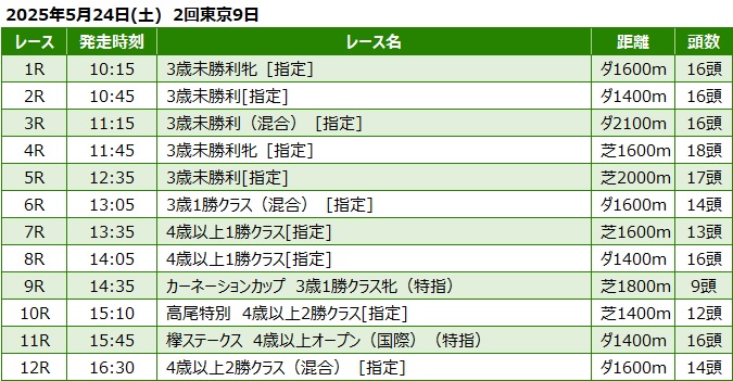 2025年5月24日(土) 東京競馬の全レース予想です。