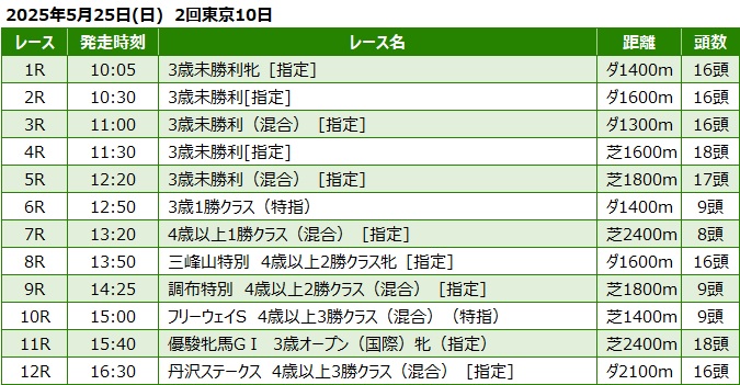 2025年5月25日(日) 東京競馬の全レース予想です。