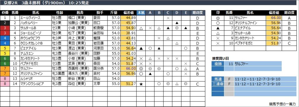 京都2R 3歳未勝利(ダ1900m) 10:25発走