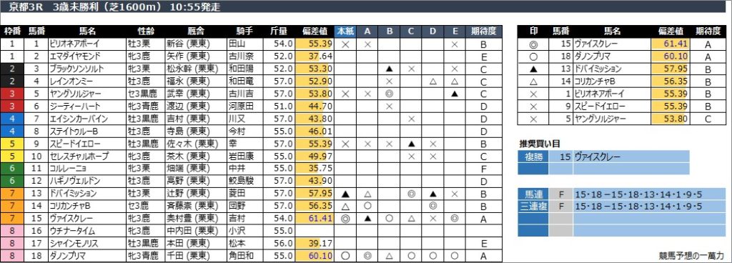 京都3R 3歳未勝利(芝1600m) 10:55発走