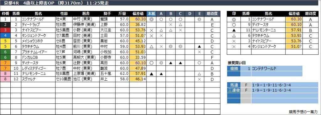 京都4R 4歳以上障害OP (障3170m) 11:25発走