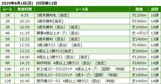 2025年6月1日(日) 京都競馬の全レース予想です。
