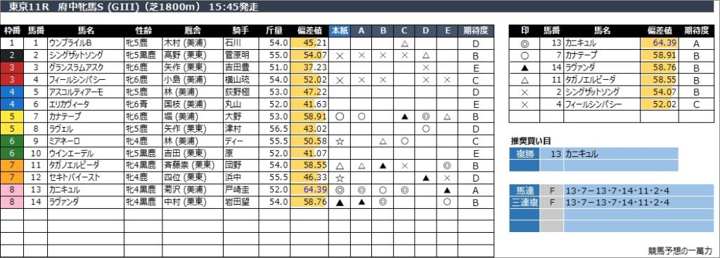 東京10R 多摩川S (芝1400m) 15:10発走