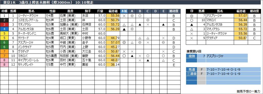 東京1R 3歳以上障害未勝利(障3000m) 10:10発走