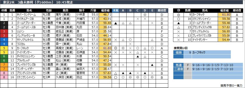 東京2R 3歳未勝利(ダ1600m) 10:45発走