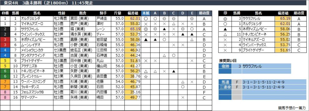 東京4R 3歳未勝利(芝1800m) 11:45発走