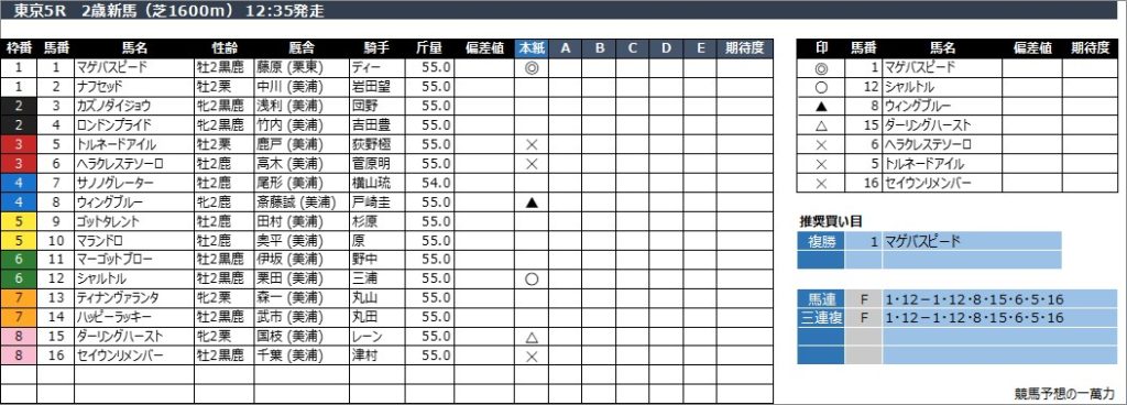 東京5R 2歳新馬(芝1600m) 12:35発走