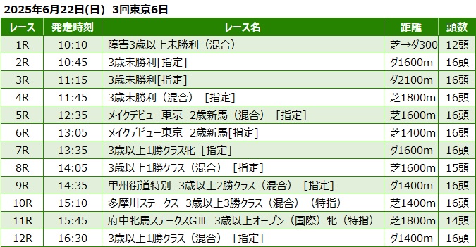 2025年6月22日(日) 東京競馬の全レース予想です。