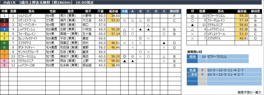 小倉1R 3歳以上障害未勝利(障2860m) 10:00発走