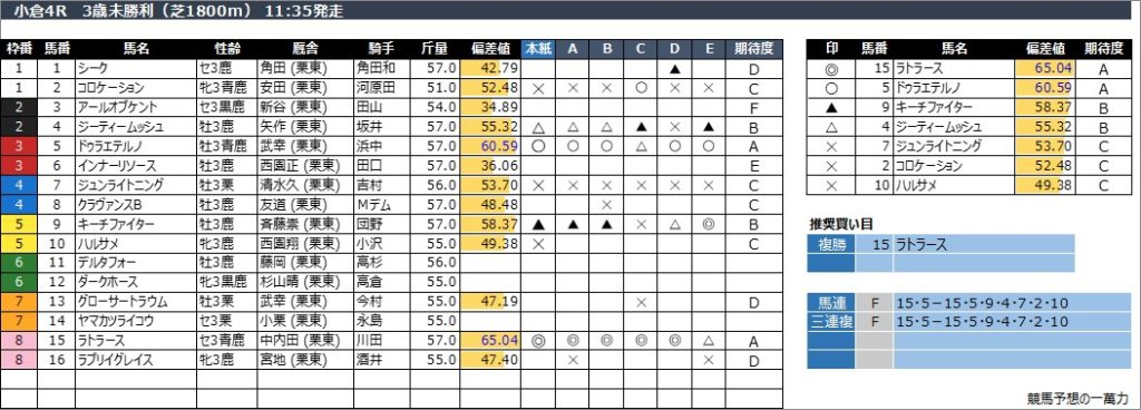 小倉4R 3歳未勝利(芝1800m) 11:35発走