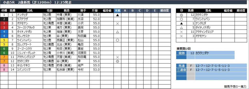 小倉5R 2歳新馬(芝1200m) 12:25発走