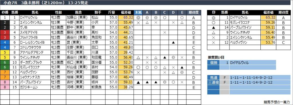 小倉7R 3歳未勝利(芝1200m) 13:25発走