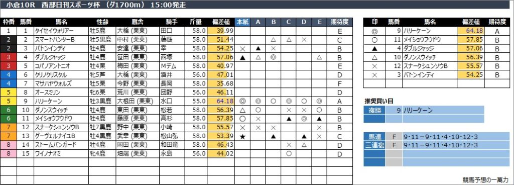 小倉10R 西部日刊スポーツ杯 (ダ1700m) 15:00発走