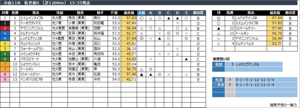 小倉11R 佐世保S (芝1200m) 15:35発走