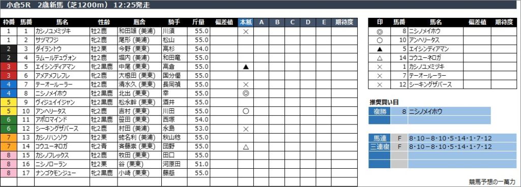 小倉5R 2歳新馬(芝1200m) 12:25発走