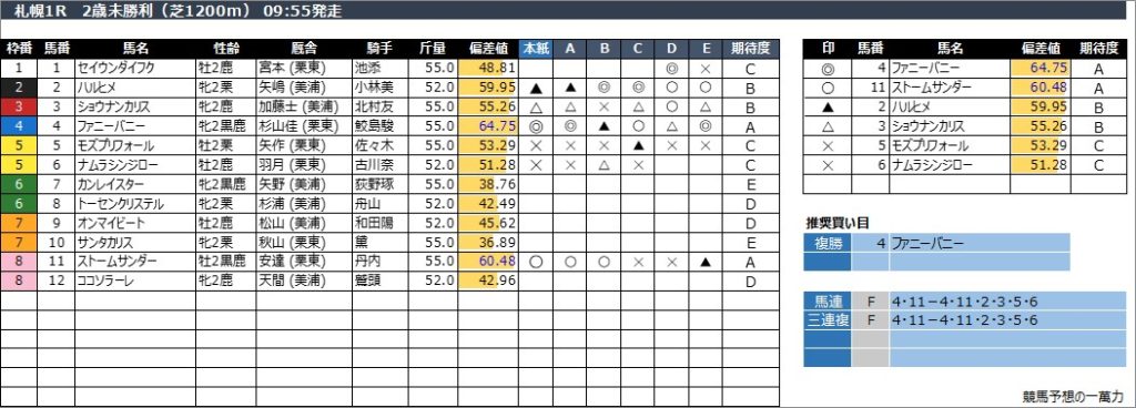 札幌1R 2歳未勝利(芝1200m) 09:55発走