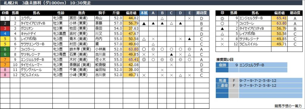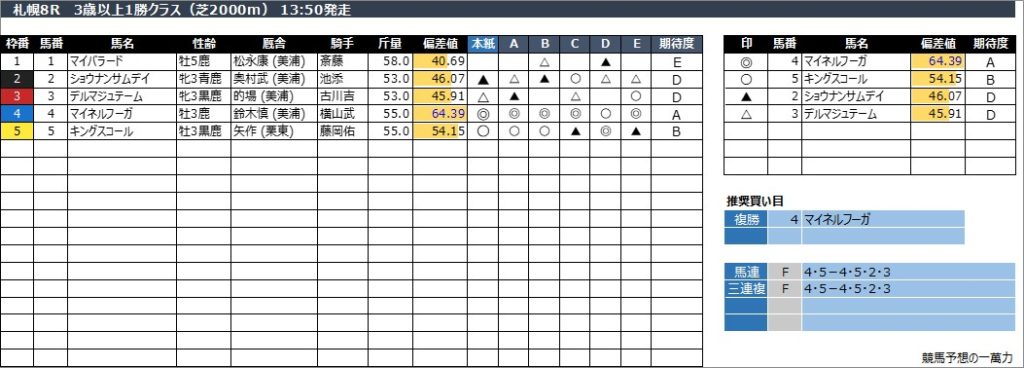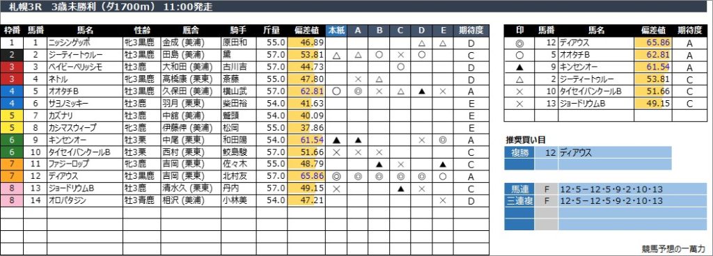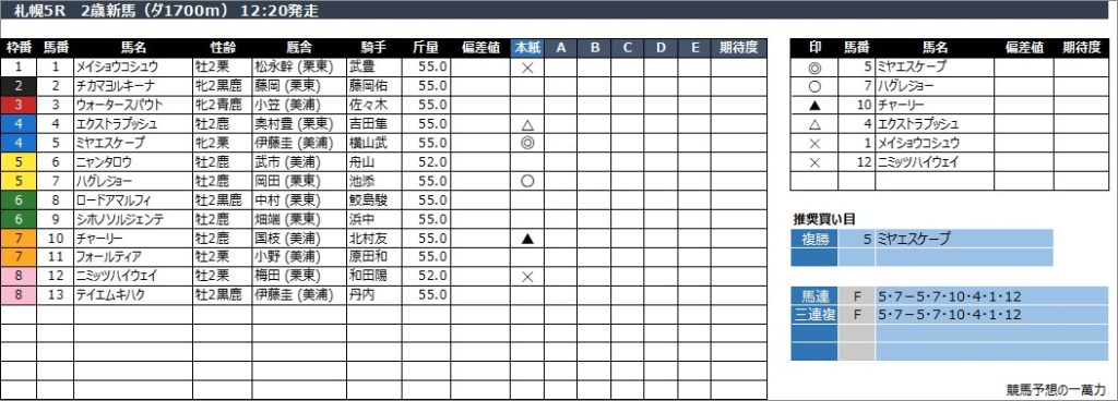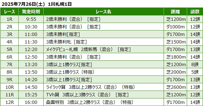 2025年7月26日(土) 札幌競馬の全レース予想です。