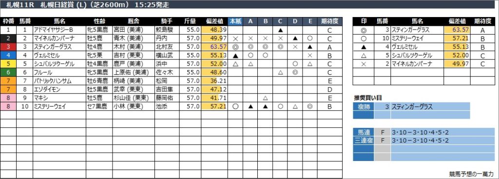 札幌11R  札幌日経賞 (L)(芝2600m) 15:25発走