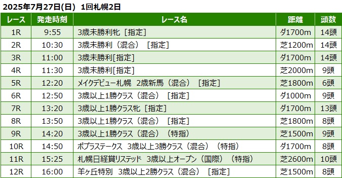 2025年7月27日(日) 札幌競馬の全レース予想です。
